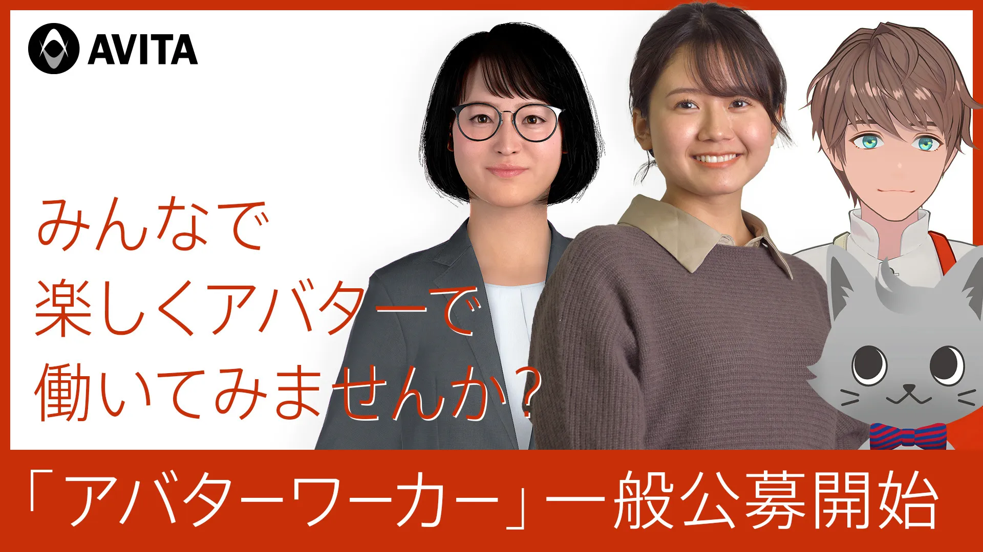 AVITA株式会社(本社:東京都品川区、代表取締役CEO:石黒浩、以下「AVITA」)は、アバターとして場所や外見などにとらわれない新しい働き方の「アバターワーカー」をこれまで数多く創出し、2023年11月末時点で累計220人を突破いたしました。この度、このような新たな働き方と雇用創出のさらなる加速に向け、「アバターワーカー」の一般公募を開始したことをお知らせいたします。